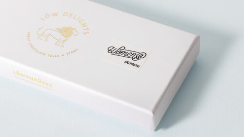 Wir behalten unsere Originalverpackung bei – dein Branding kommt ergänzend dazu. So entsteht ein hochwertiges Schokoladengeschenk für Kund:innen oder Mitarbeitende, das deine Marke sichtbar macht und gleichzeitig den Löw Delights Charakter bewahrt.