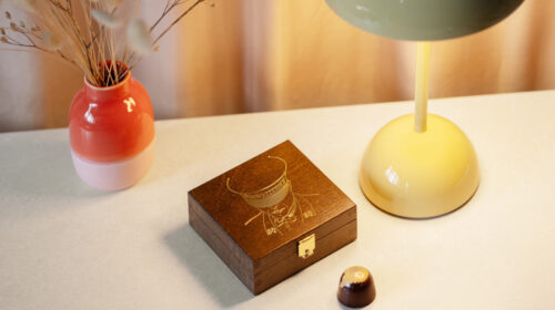 Für ein Zürcher Hotel haben wir eine Holzbox mit ihrem Branding veredelt. So wurde aus Schokolade ein exklusives Turndown-Highlight.