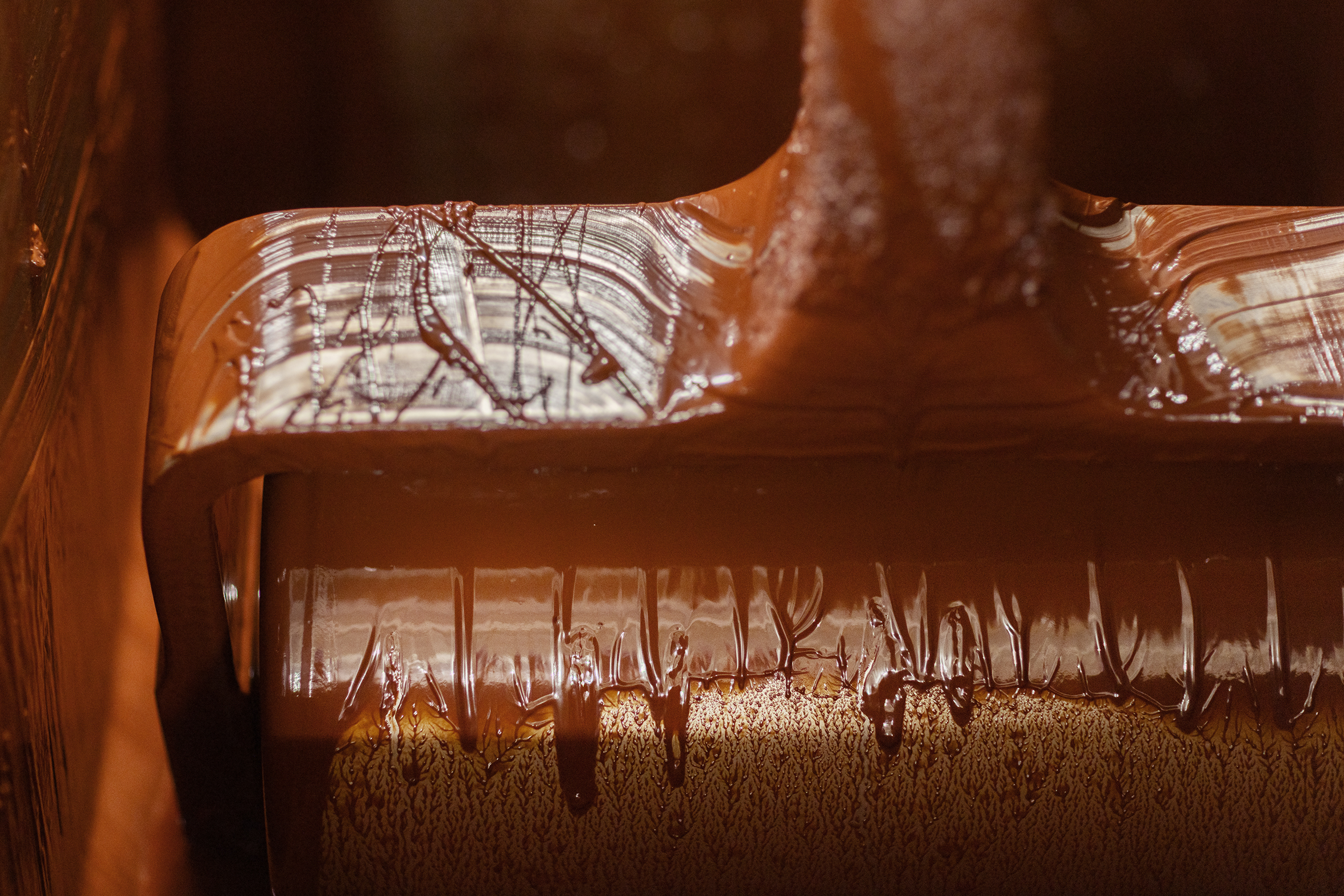 Nach der Anlieferung werden die Bohnen optisch und sensorisch geprüft – etwa auf Feinheit, Aroma und Farbe. Anschliessend erfolgt eine schonende Röstung, damit sich ihre feinen Nuancen entfalten können. In der Conche wird die Schokolade mit Zeit und Erfahrung bewegt, bis sie ihre charakteristische Textur und das volle Aromaprofil erreicht.