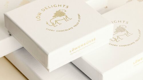 Löw Delights steht für handgemachte, hochwertige Produkte. Ihre Exklusivität soll nicht nur auf der Zunge, sondern auch mit den Augen wahrgenommen werden. Die Löwenküsse werden von Hand in hochwertige Pralinéboxen verpackt. Selbst unscheinbare Kleberli (nachhaltig aus Papier) zum sicheren Verschliessen werden nach genauen Vorgaben sorgfältig platziert. Auch der verwendete Goldton der Heissfolienprägung auf allen Verpackungen ist kein Zufall, sondern Teil eines konsequenten visuellen Konzepts.